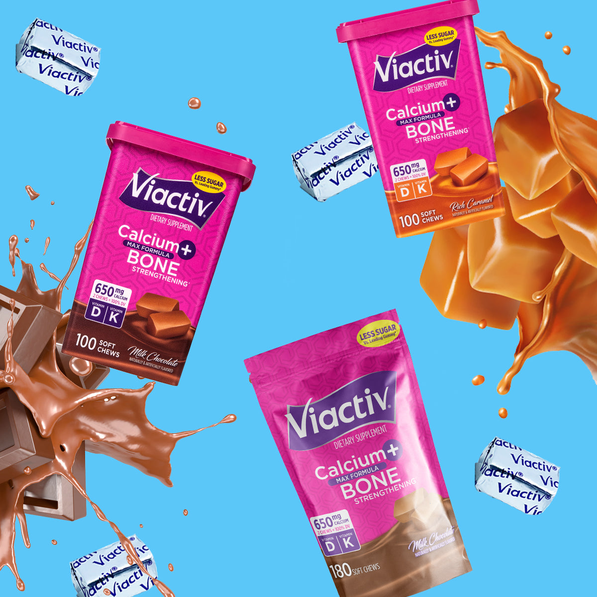 With 30% more calcium than gummy supplements, 2/3 less sugar, and two indulgent, creamy flavors - you'll look forward to taking Viactiv calcium chews every day.